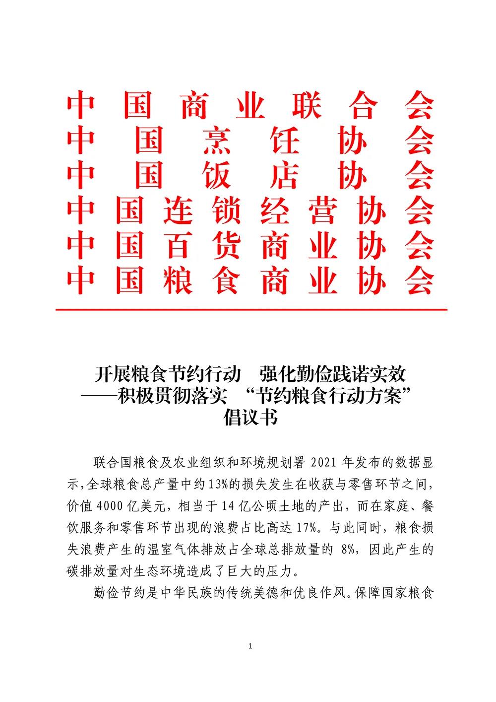 开展粮食节约行动 强化勤俭践诺实效——积极贯彻落实“ 节约粮食行动方案”倡议书