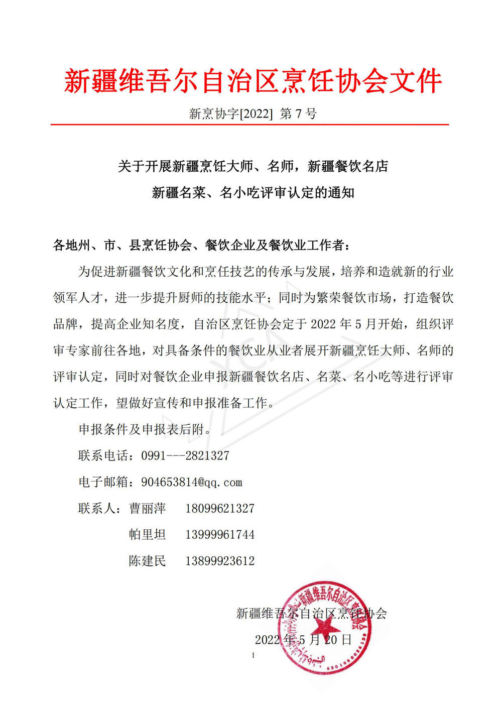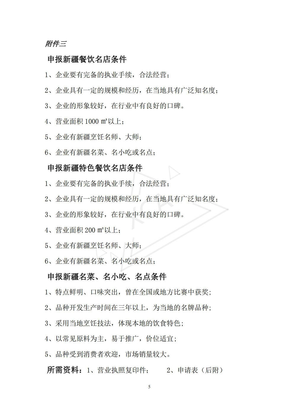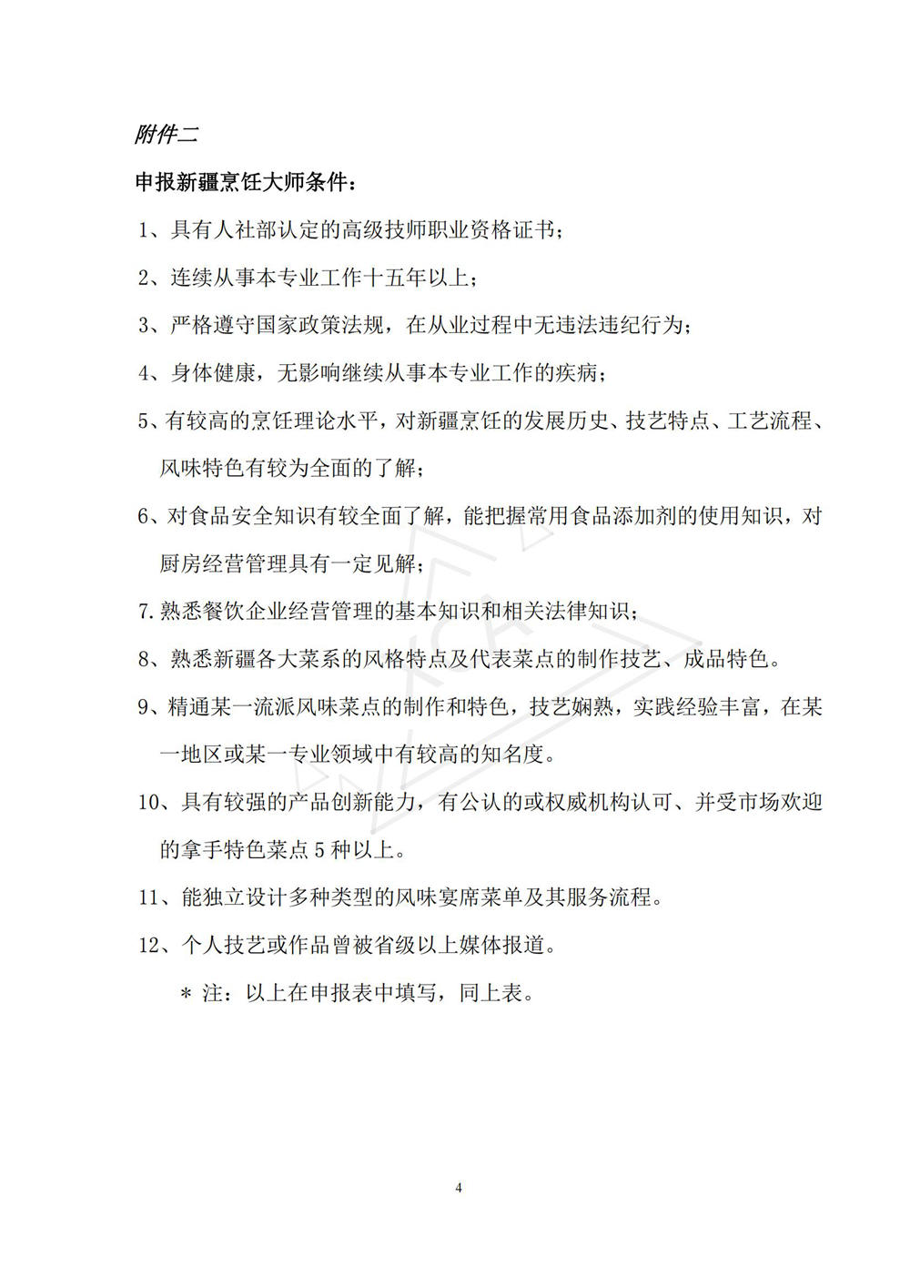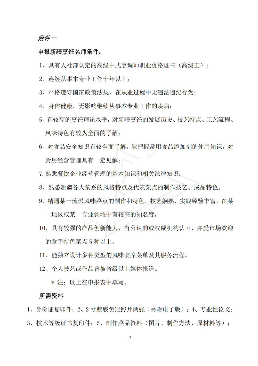 关于开展新疆烹饪大师、名师,新疆餐饮名店、名菜、名小吃评审认定的通知