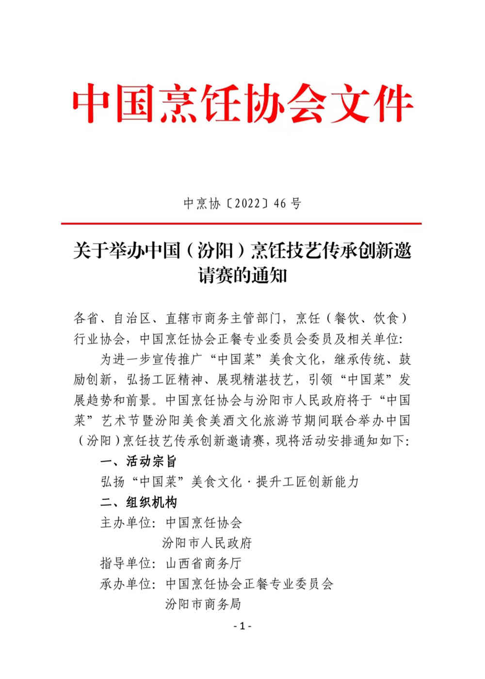 转发【关于举办中国(汾阳)烹饪技艺传承创新邀请赛的通知】
