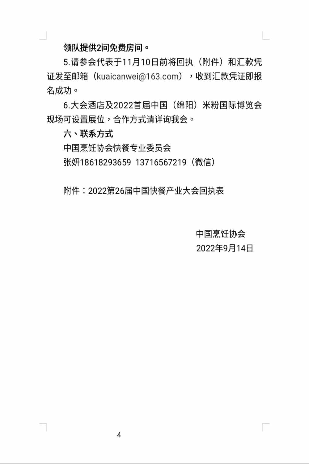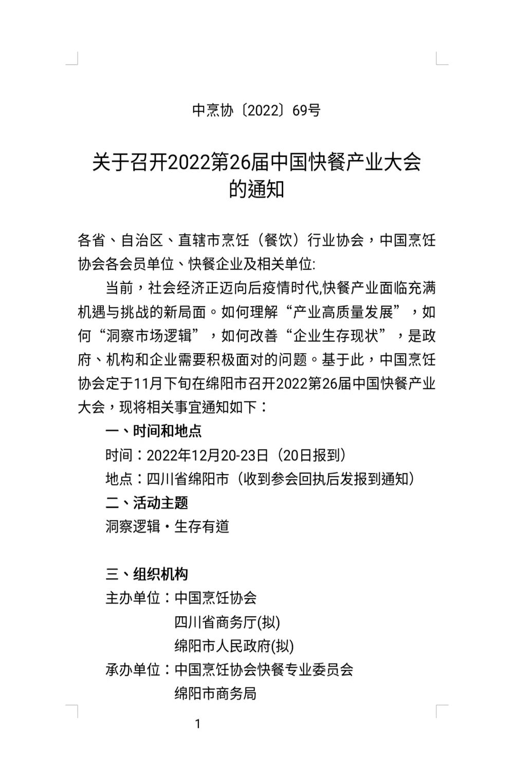 【转发】关于召开2022第26届中国快餐产业大会的通知