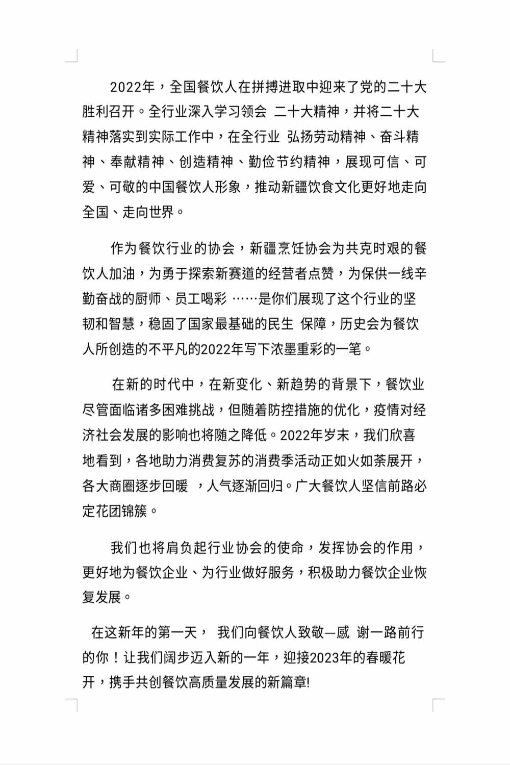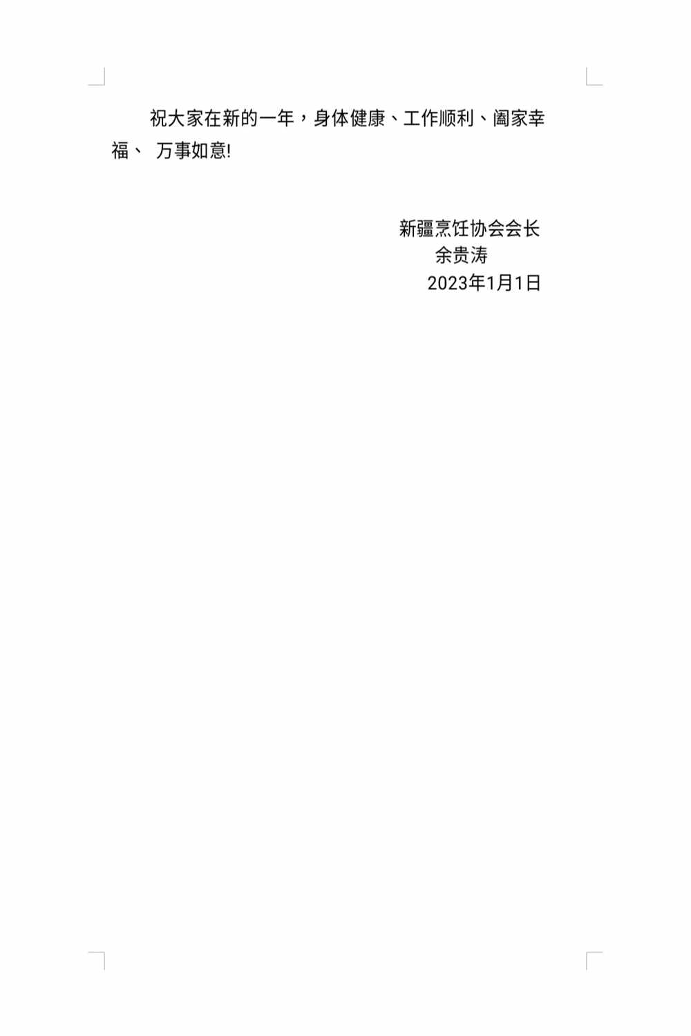 新疆烹饪协会新年贺词