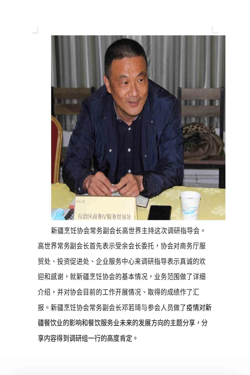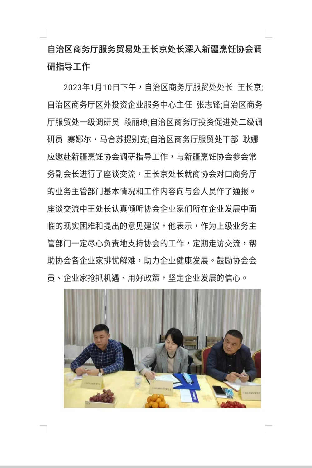 自治区商务厅服务贸易处王长京处长深入新疆烹饪协会调研指导工作
