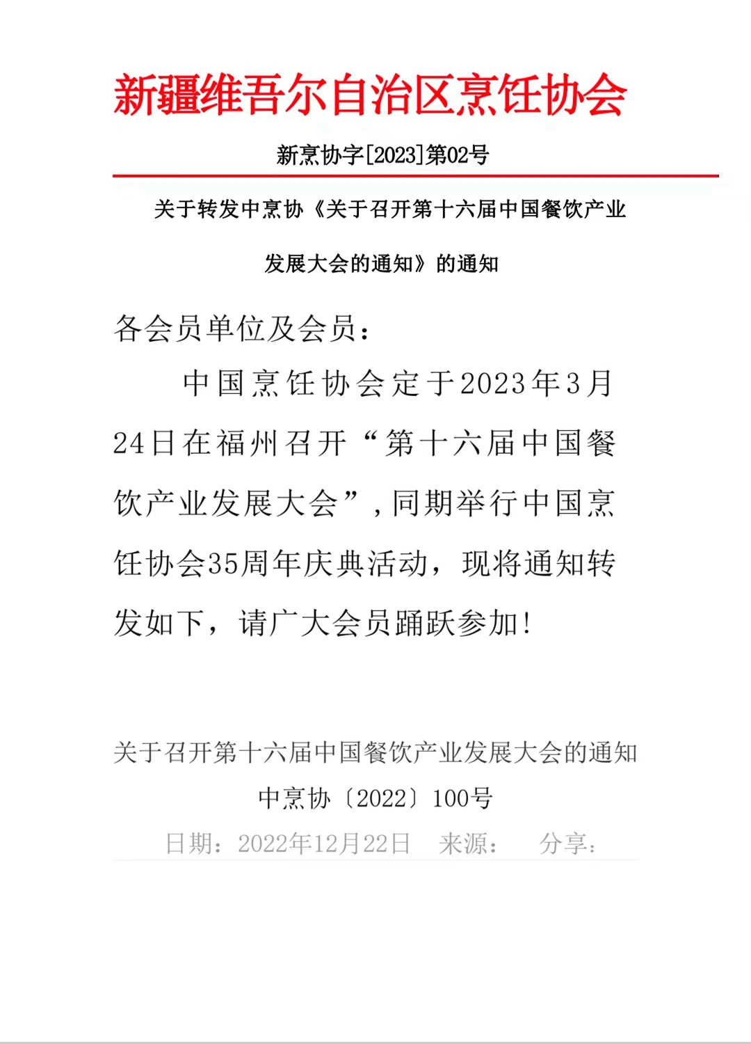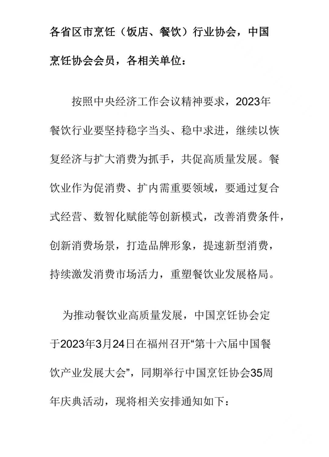 【转发】中烹协《关于召开第十六届中国餐饮产业发展大会的通知》