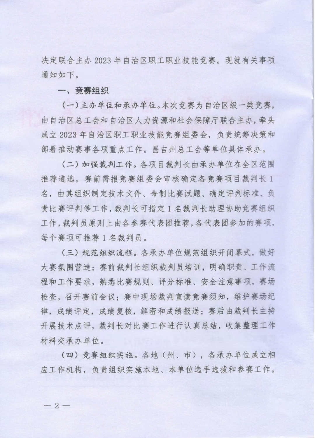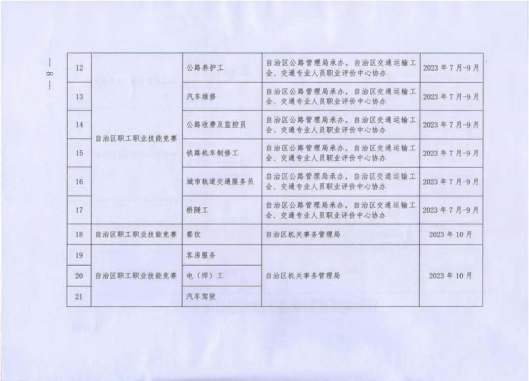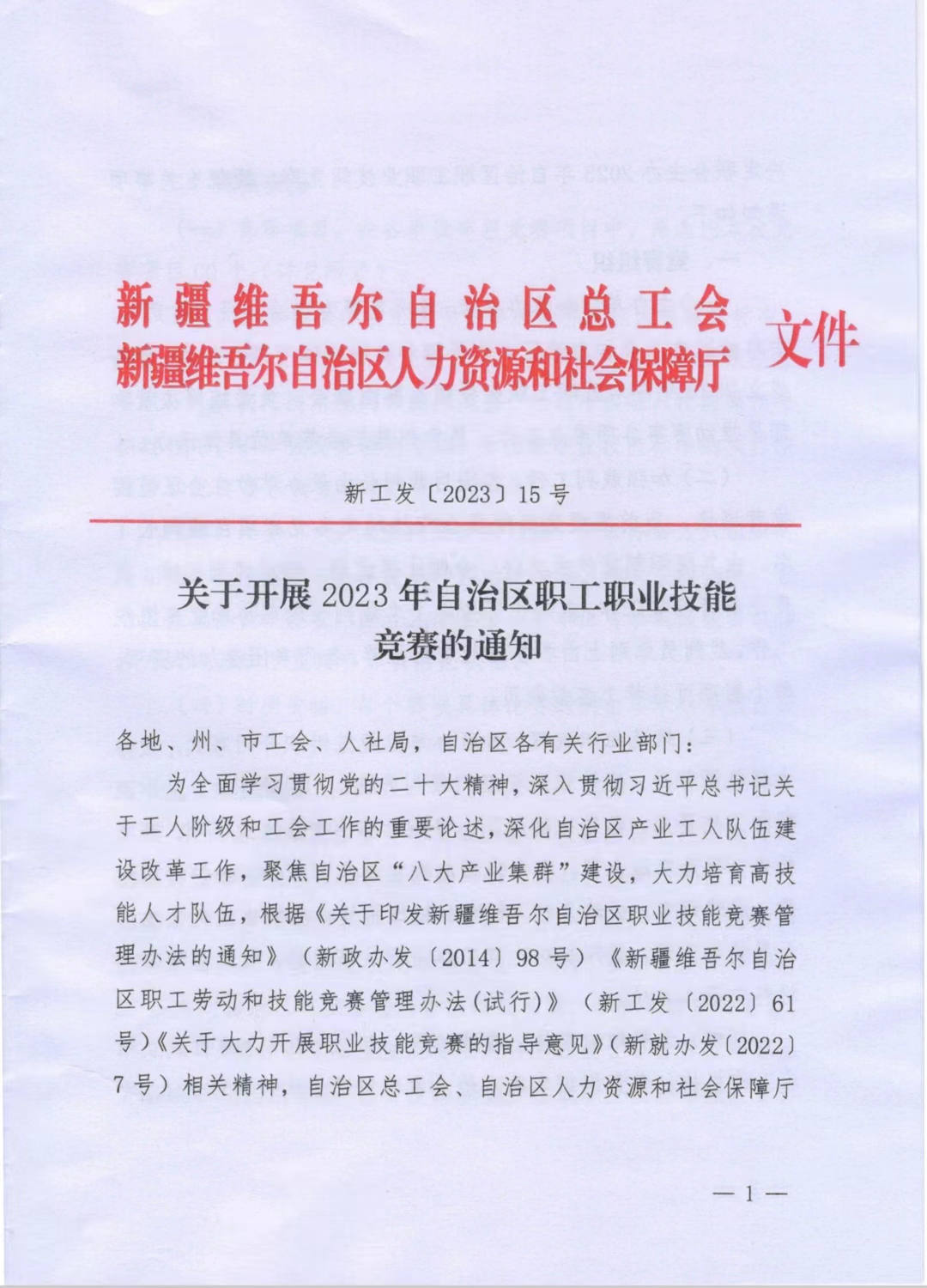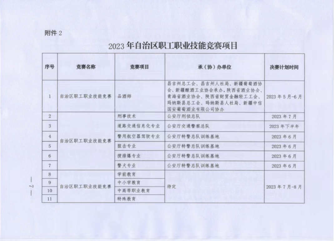附:关于开展2023年自治区职工职业技能竞赛的通知