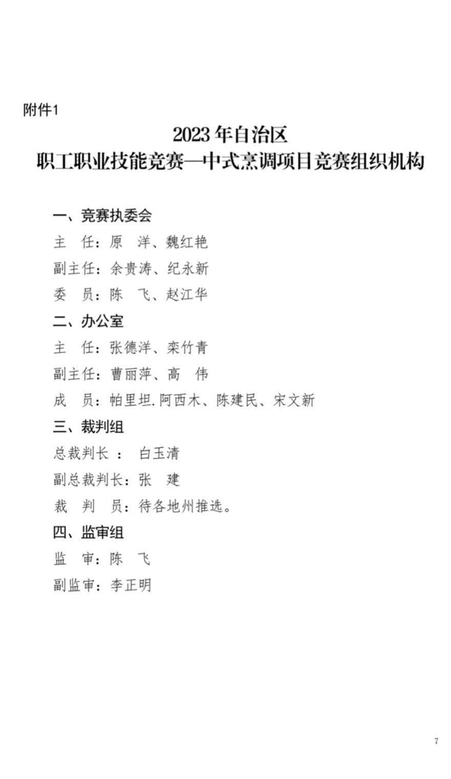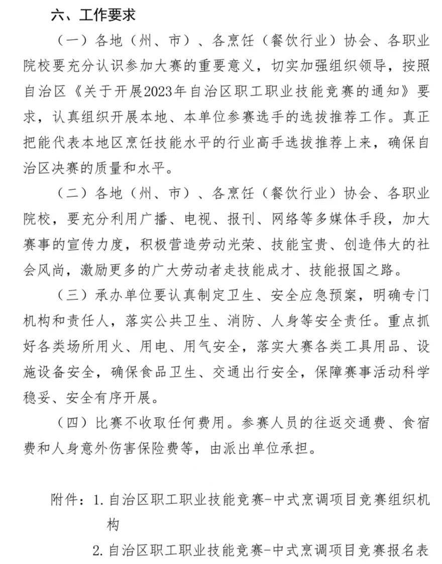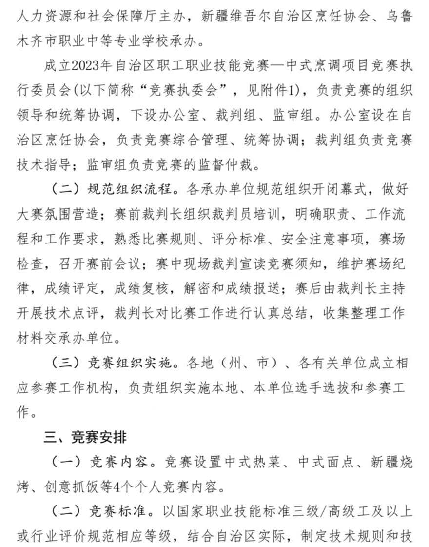 关于举办 2023 年自治区职工职业技能竞赛 — — 中式烹调项目竞赛的通知