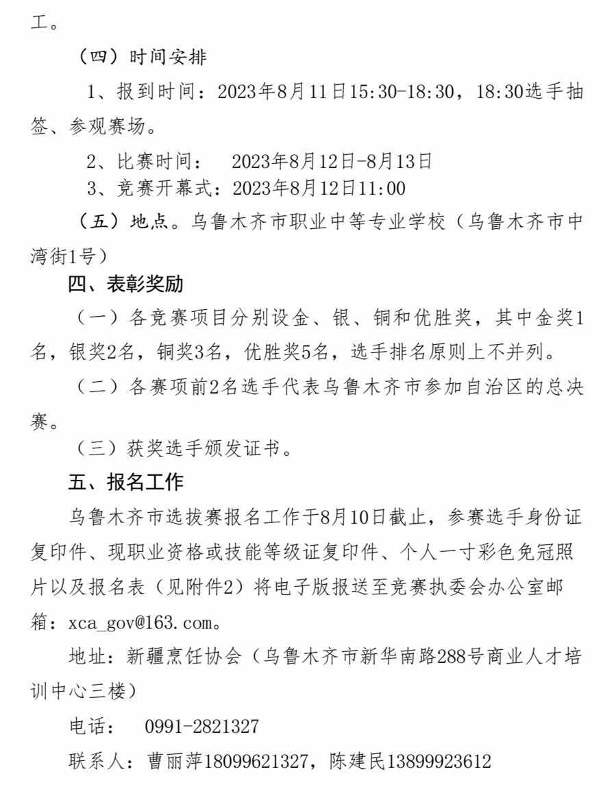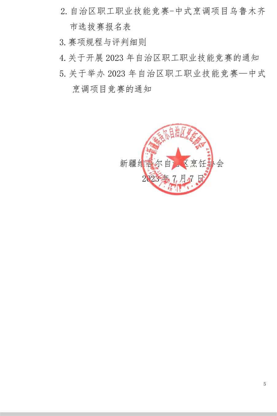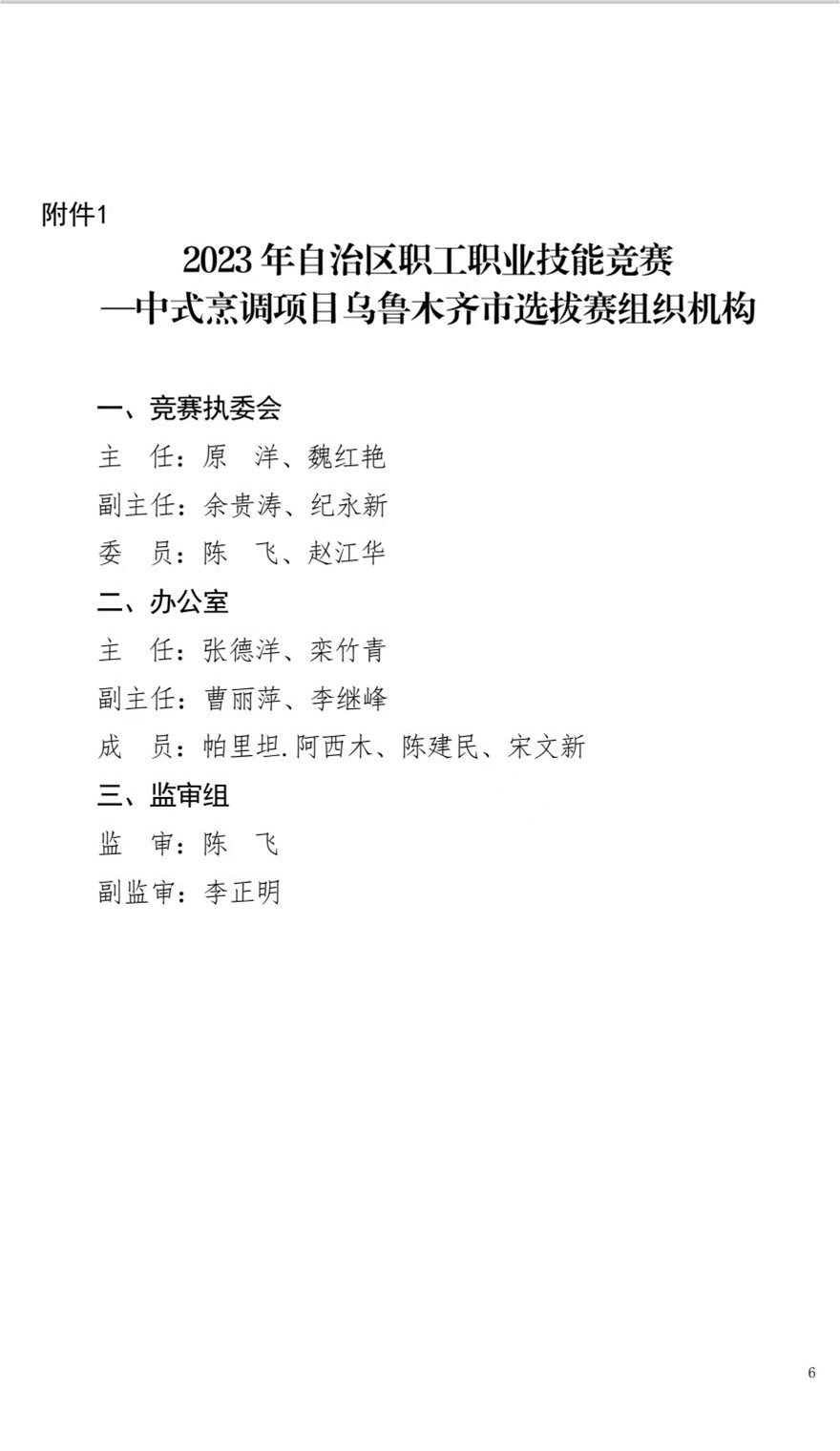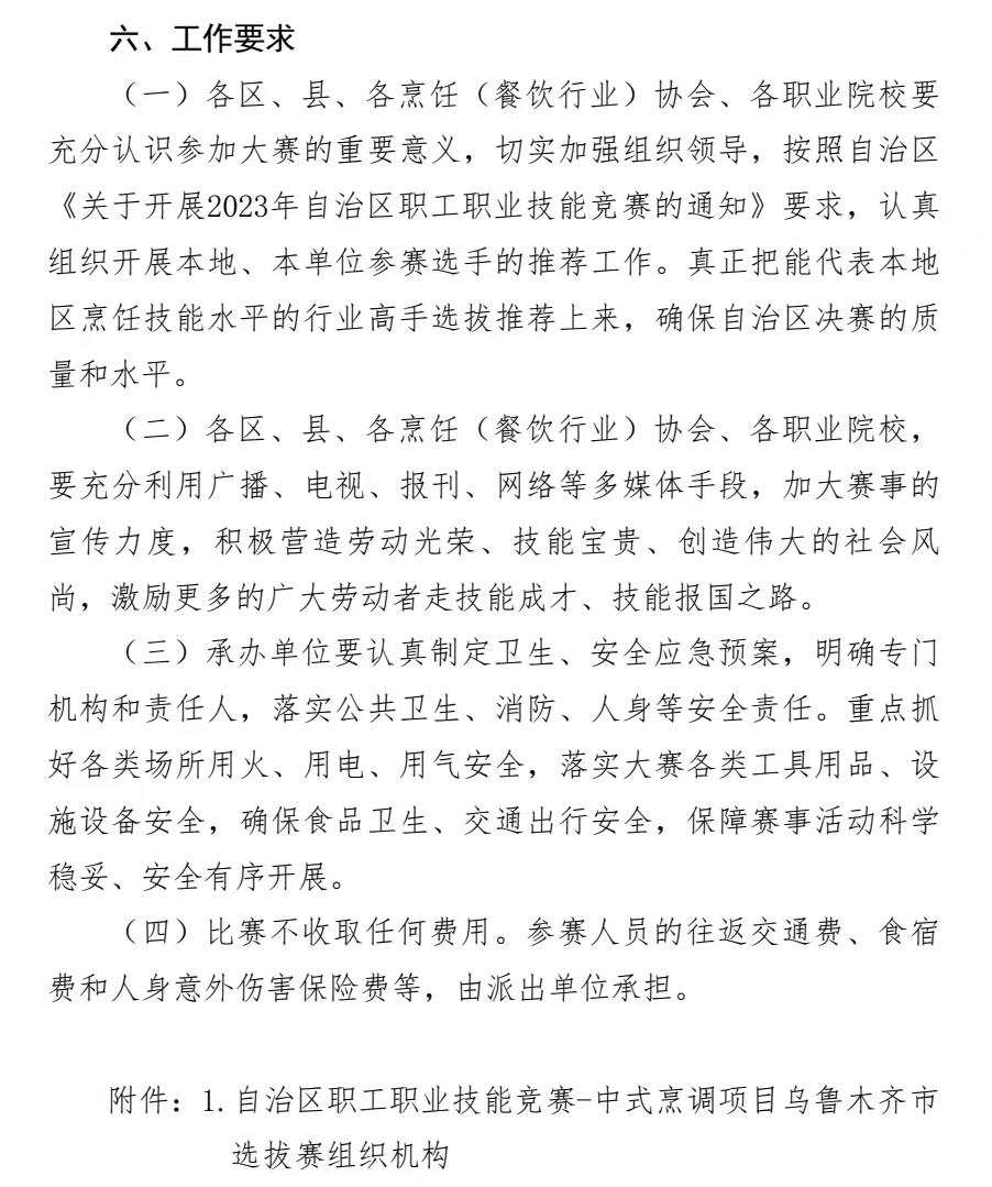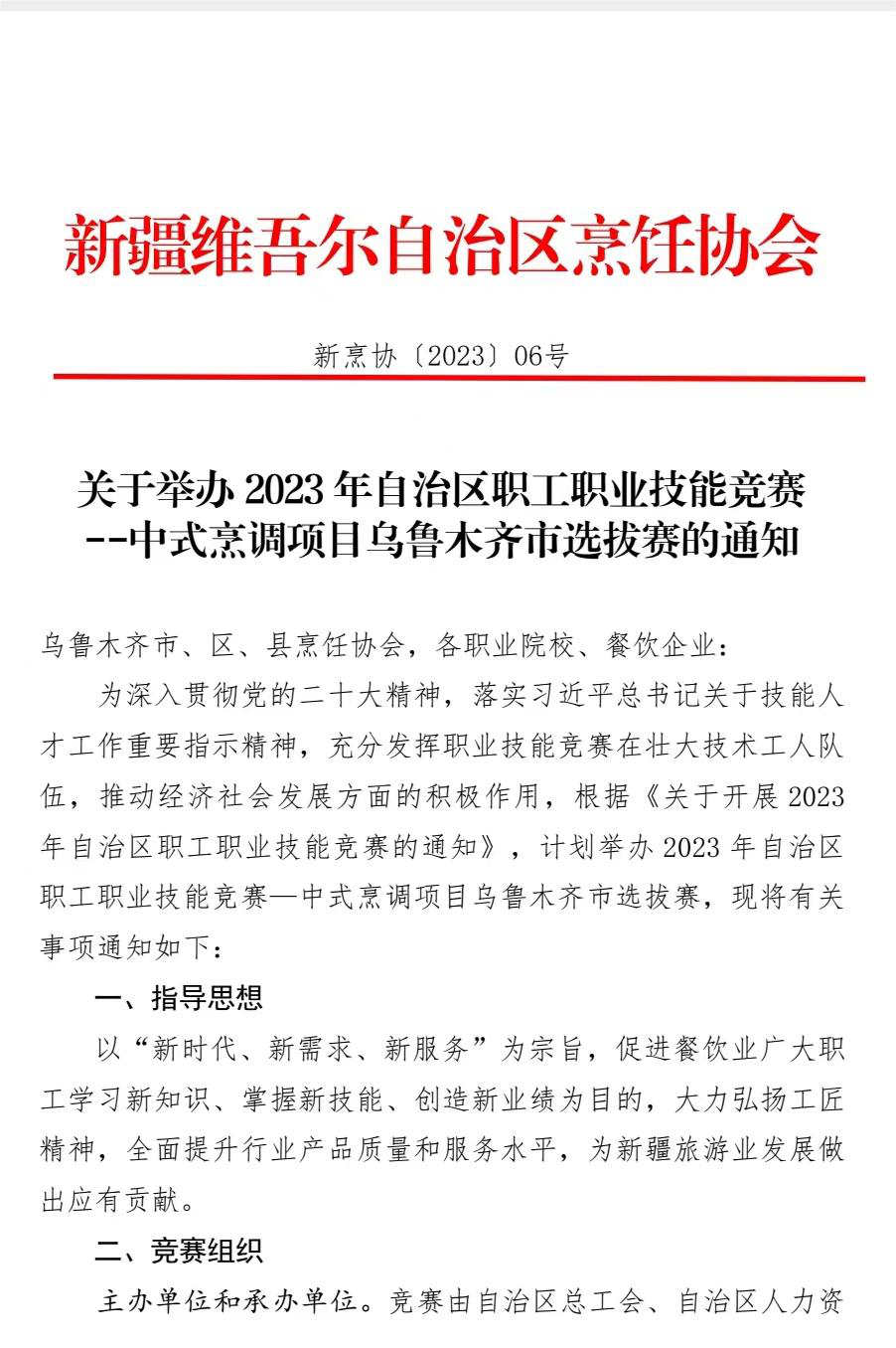 关于举办 2023 年自治区职工职业技能竞赛 --中式烹调项目乌鲁木齐市选拔赛的通知
