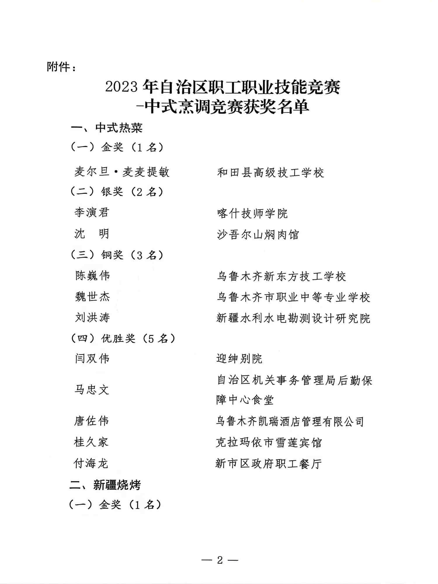 【转发】关于公布2023年自治区职工职业技能竞赛-中式烹调竞赛获奖名单的通知